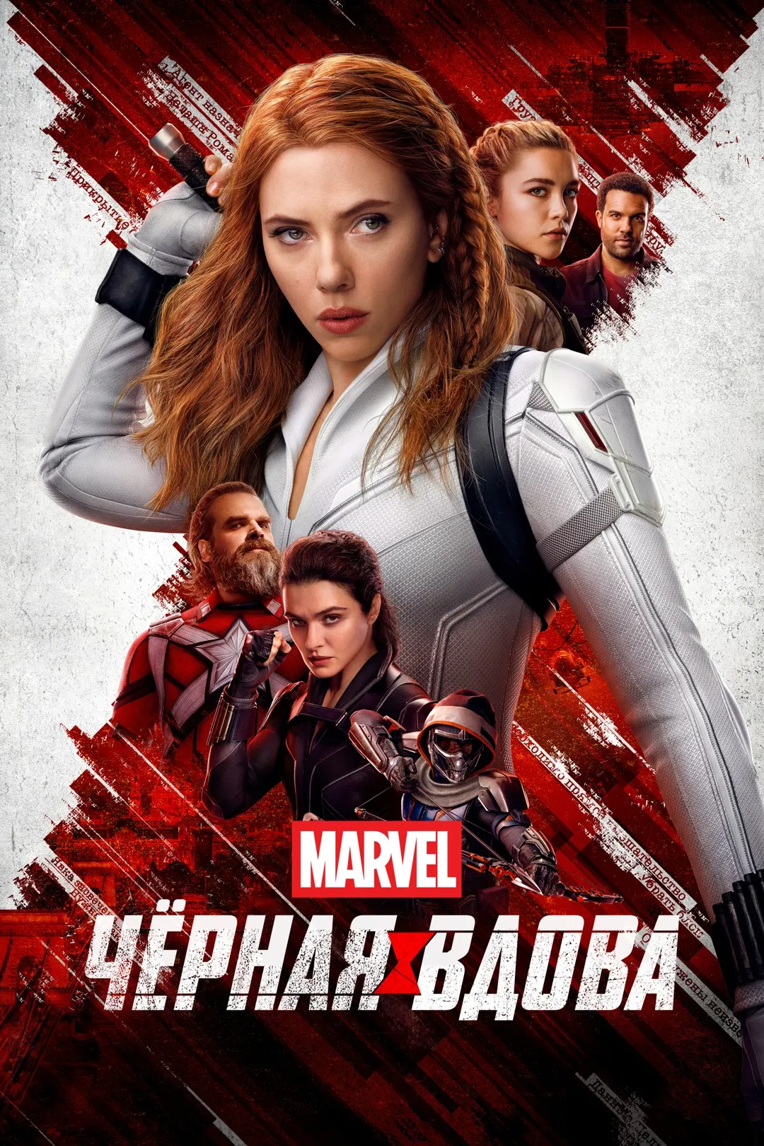 - В ролях: Скарлетт Йоханссон, Флоренс Пью, Рэйчел Вайс, Дэвид Харбор, Рэй Уинстон, Ольга Куриленко, О. Т. Фагбенли, Уильям Хёрт, Нанна Блонделл, Джейд Ма